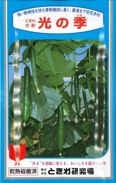 [キュウリ] 光の季 350粒 ときわ研究場 [キュウリ] 光の季 350粒 ときわ研究場 販売価格: 11,000円(税込) 返品特約に関する重要事項 お問い合わせ お気に入り登録 特性 ウイルス病(ZYMV)・ウドンコ病等に強く、褐斑病、ベト病の発生も少なく、夏期の劣悪条件下でも草勢が安定している。 果実肥大がスムーズで、枝の発生よく草勢がバテにくい。 果形の乱れが少なく、草勢の維持が容易である。 ※台木は「ぞっこん」「ときわパワーZ2」「ときわGT-2」が適します。 4月上旬から8月中旬まき
