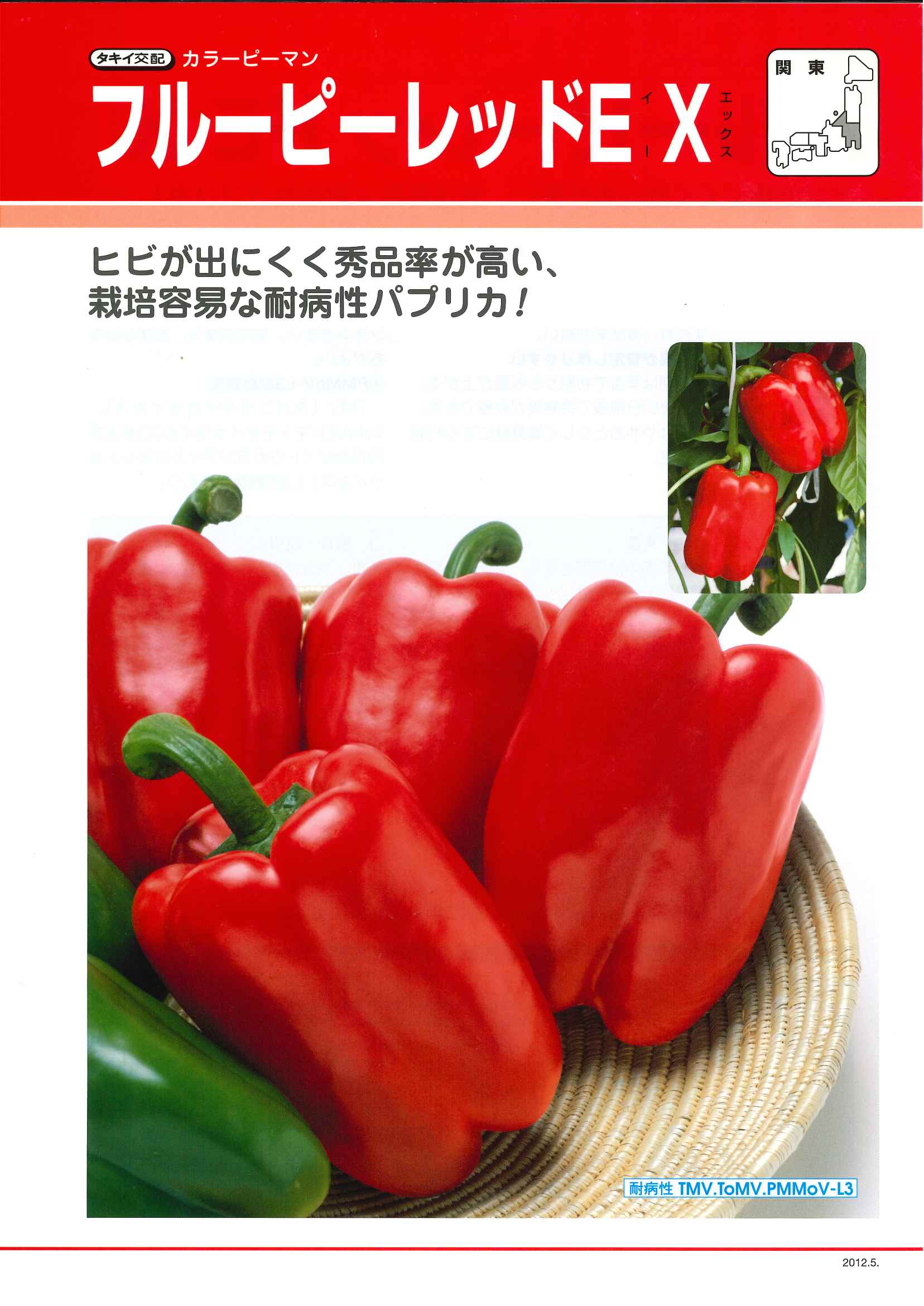 TMV(タバコモザイクウイルス)、ToMV(トマトモザイクウイルス)およびPMMoV(トウガラシマイルドモットルウイルス)L3型耐病性をもつ。