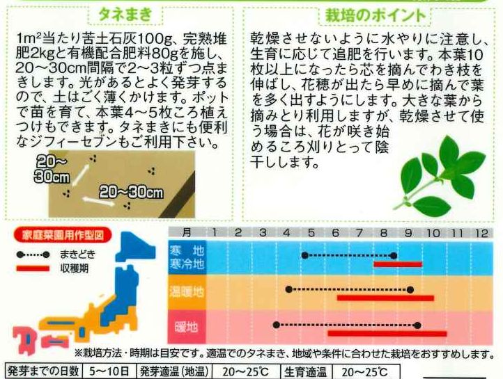 本葉10枚以上になったら芯を摘んでわき枝を伸ばし、花穂が出たら早めに摘んで葉を多く出すようにします。